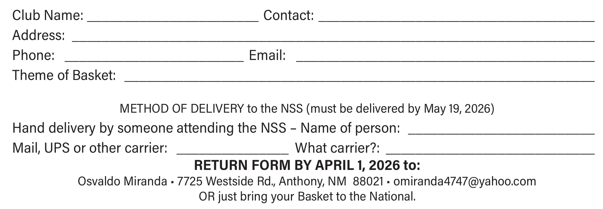 DONATIONS REQUESTED! Donations for the National Specialty General Raffle are needed! Everyone looks forward to seeing the loaded raffle table at the National Specialty. If you have items that you would like to offer, please bring them to the NSS. If you’re not attending but have things you’d like to donate, please contact Renee via email at gsplara@suddenlinkmail.com.