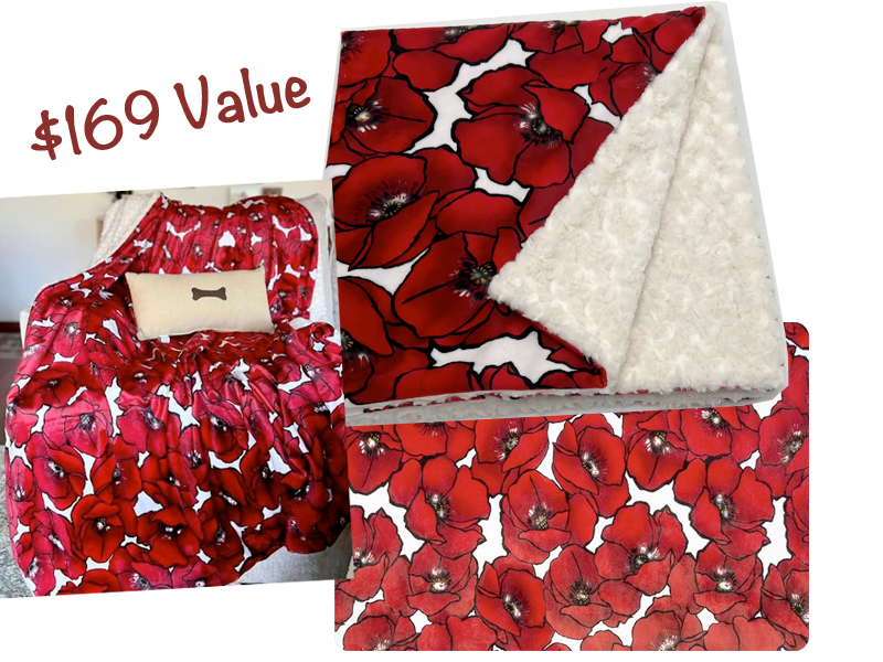 The backing is our cuddly, soft tea rose fabric! Big enough to share with your pup.