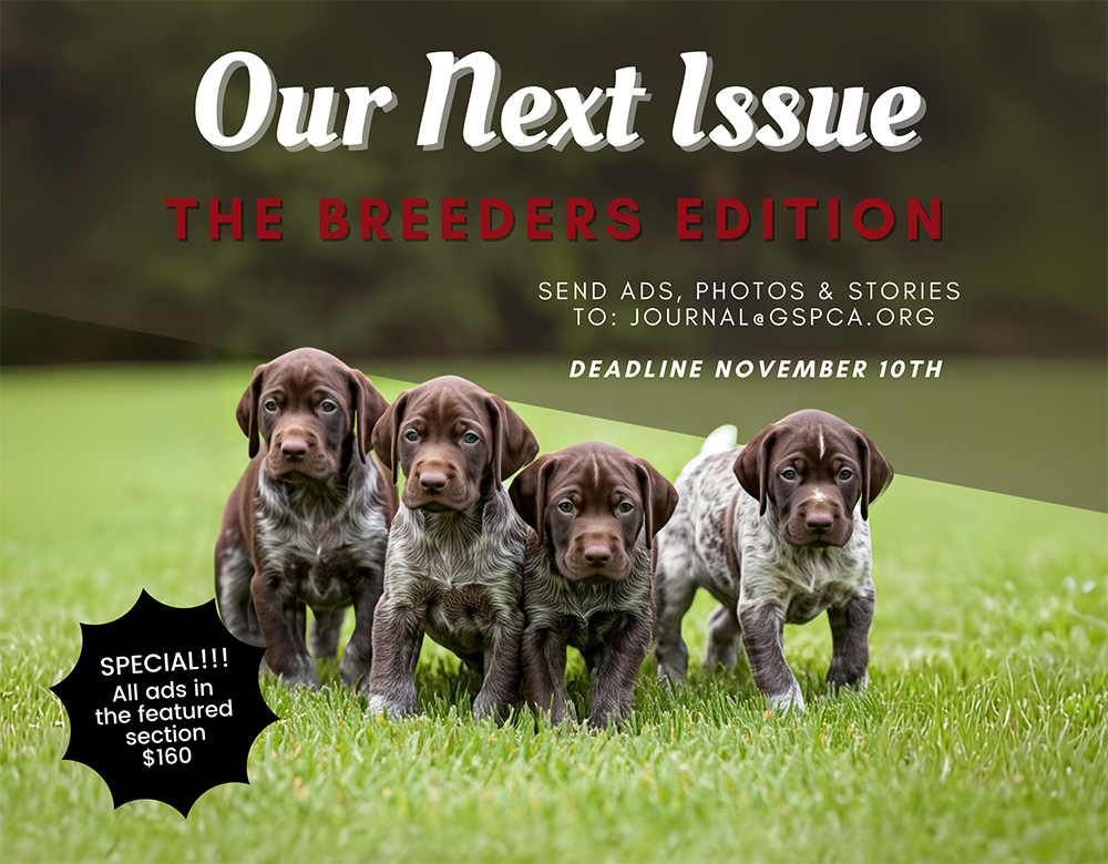 Advertising a dog or kennel is a perk of membership in the GSPCA. All dogs/kennels advertised must be fully owned by GSPCA members in good standing. For advertised litters, the dam must be fully owned by GSPCA members in good standing and health testing on the sire and dam must be included. An exception to the fully owned rule is made for deceased dogs but in that case the person placing the ad must have been an owner and be a current member in good standing.
